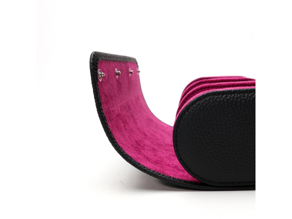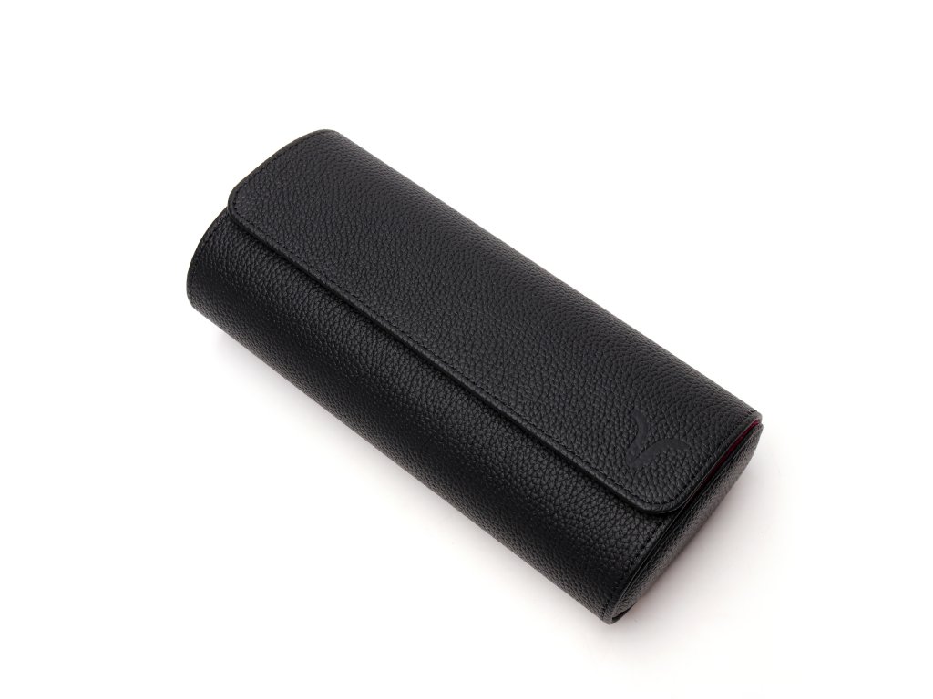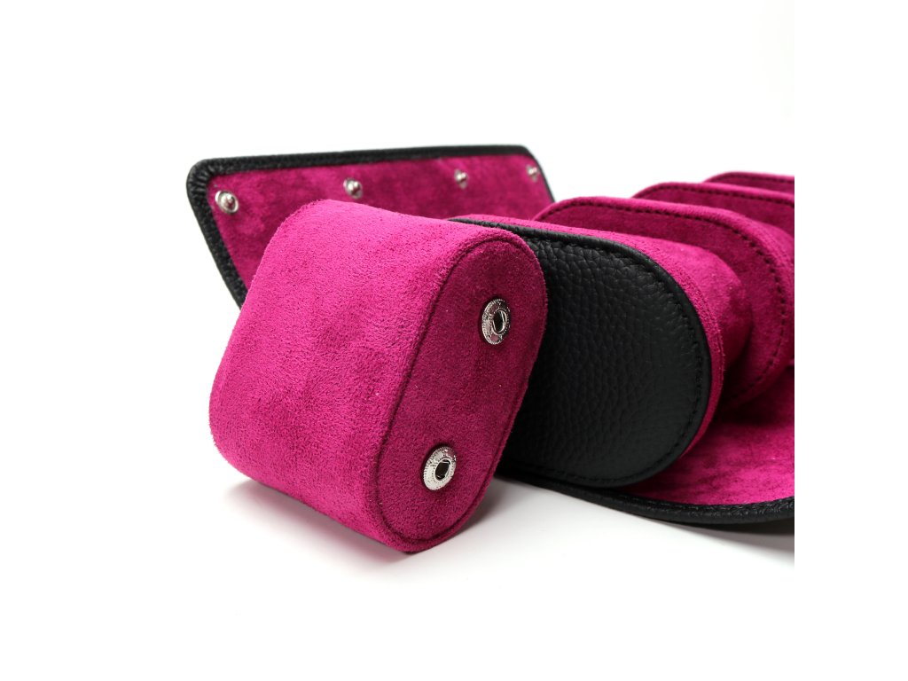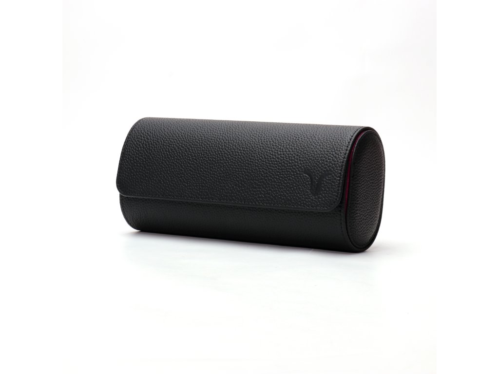 Watch Roll hodinkové pouzdro z černé kůže s interiérem z pravého semiše fialové barvy. Navržen k uložení a ochraně tří kusů hodinek.